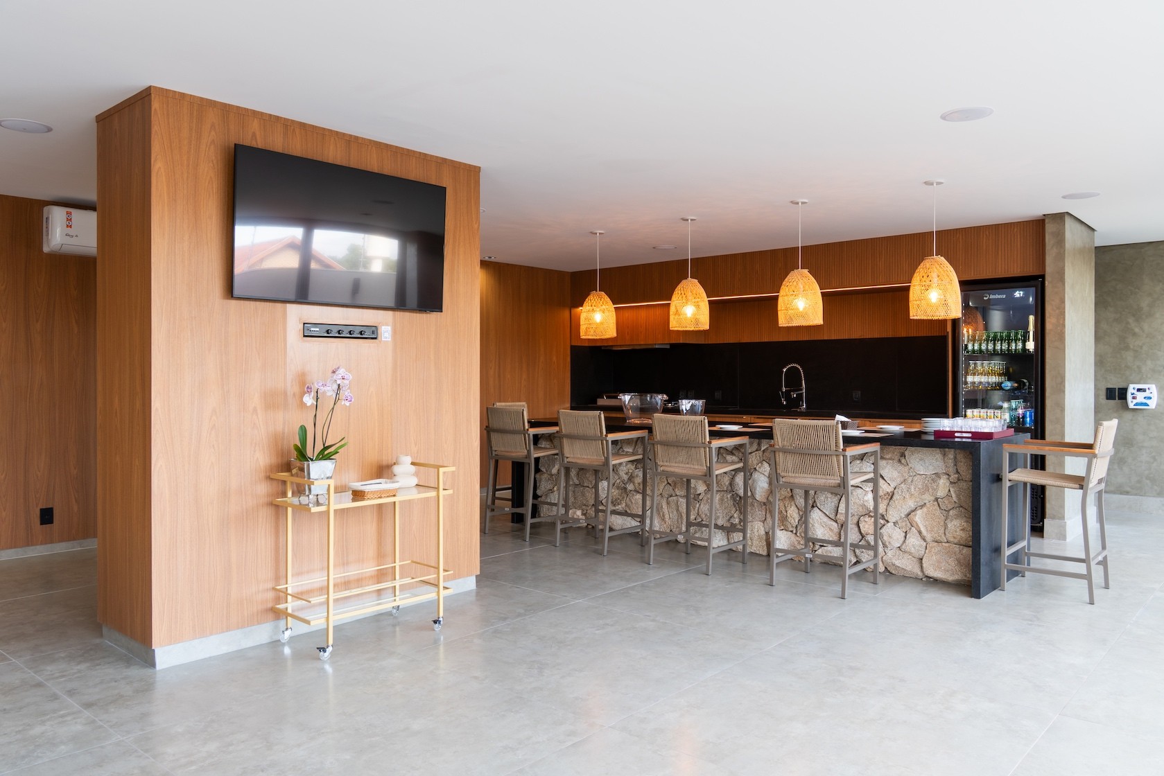 No andar superior, oferecemos cinco apartamentos que garantem conforto e privacidade aos seus convidados.